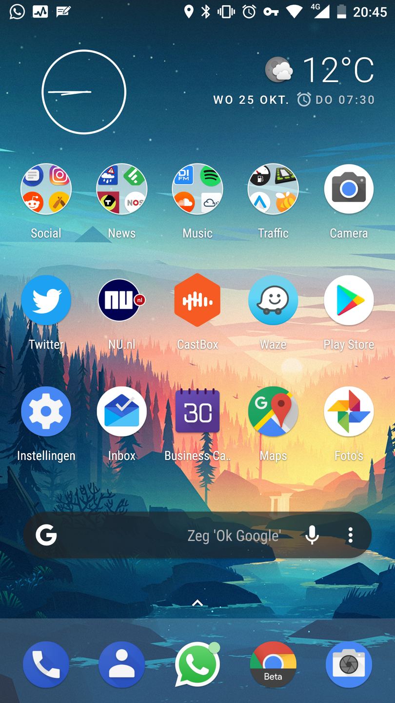 Een klein irritant puntje is dat de OK Google functie actief blijft, ook als je hem uitzet in de instellingen. De grap is dat de Google widget daar boosdoener van is. Die eraf gooien en vervangen voor de Chrome zoekwidget lost dat probleem op.