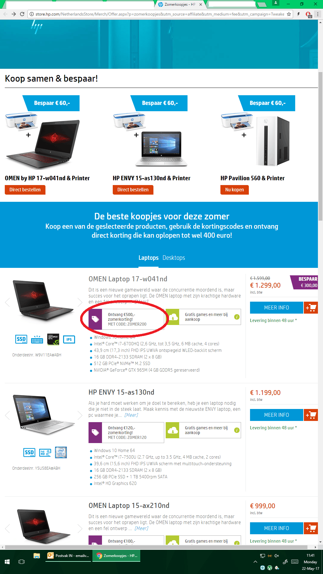 Om dan vervolgens maar te zwijgen over de misleiding met betrekking tot de genoemde actieprijs. Want zoals in de pricewatch te lezen is de laptop bij webwinkels al te koop voor €1.299,- en heb je dus via de HP store effectief nog eens '€200,- korting boven andere webwinkels'.