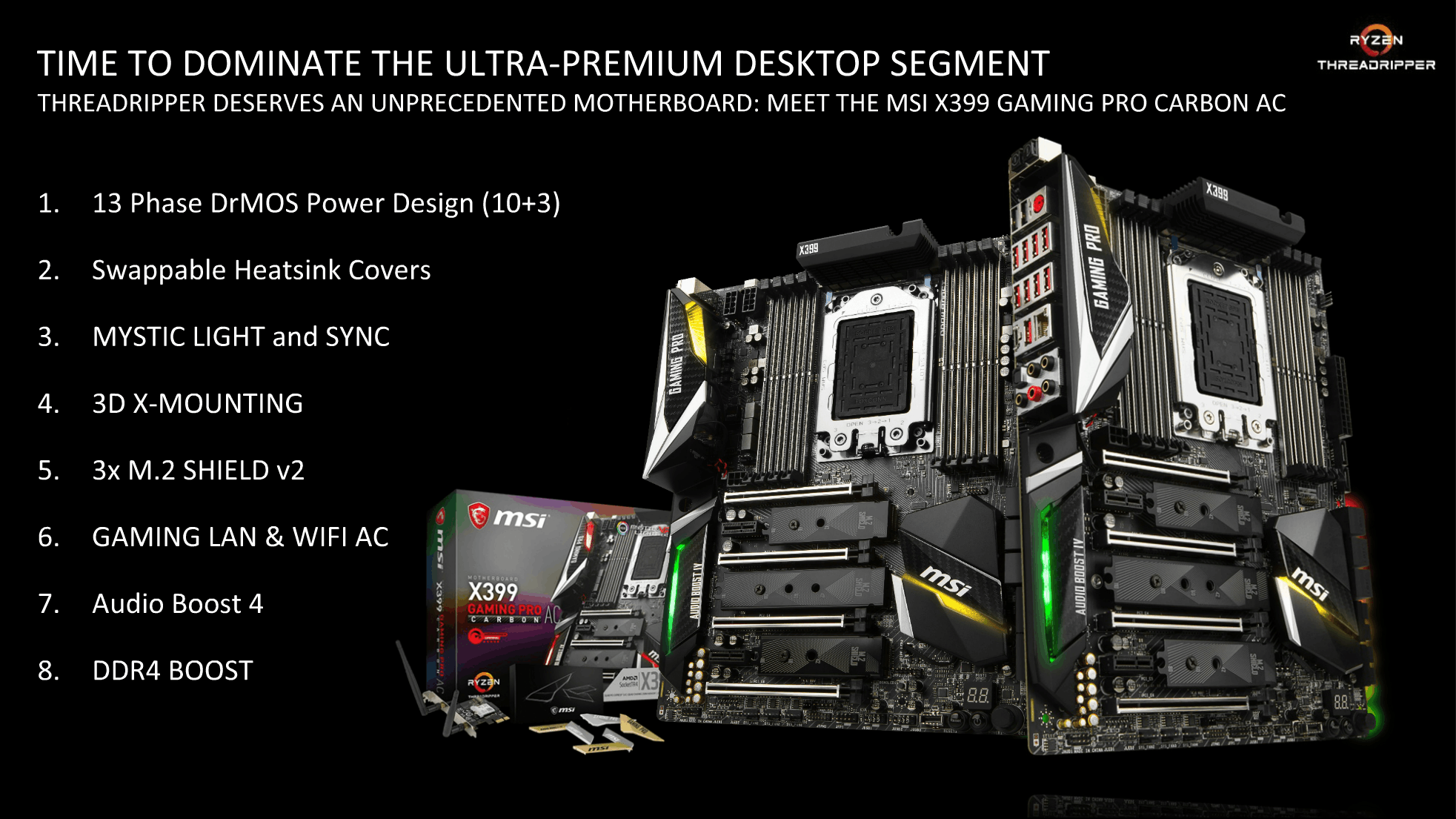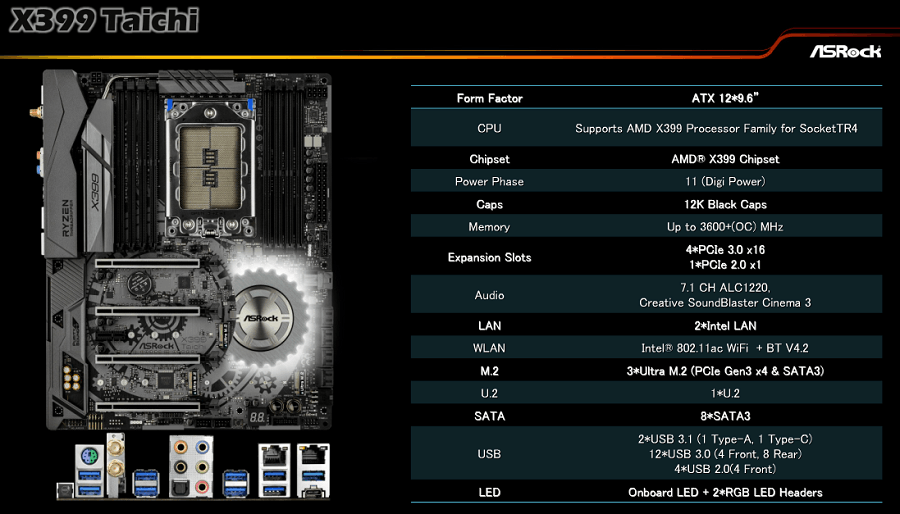 Goed, dus Asus Zenith Extreme, Gigabyte AORUS X399-Gaming-K7, AsRock X399-Gaming Pro en X399-Taichi (dank @-The_Mask- ) en morgen de MSI X399-????? (dank @The Source ).