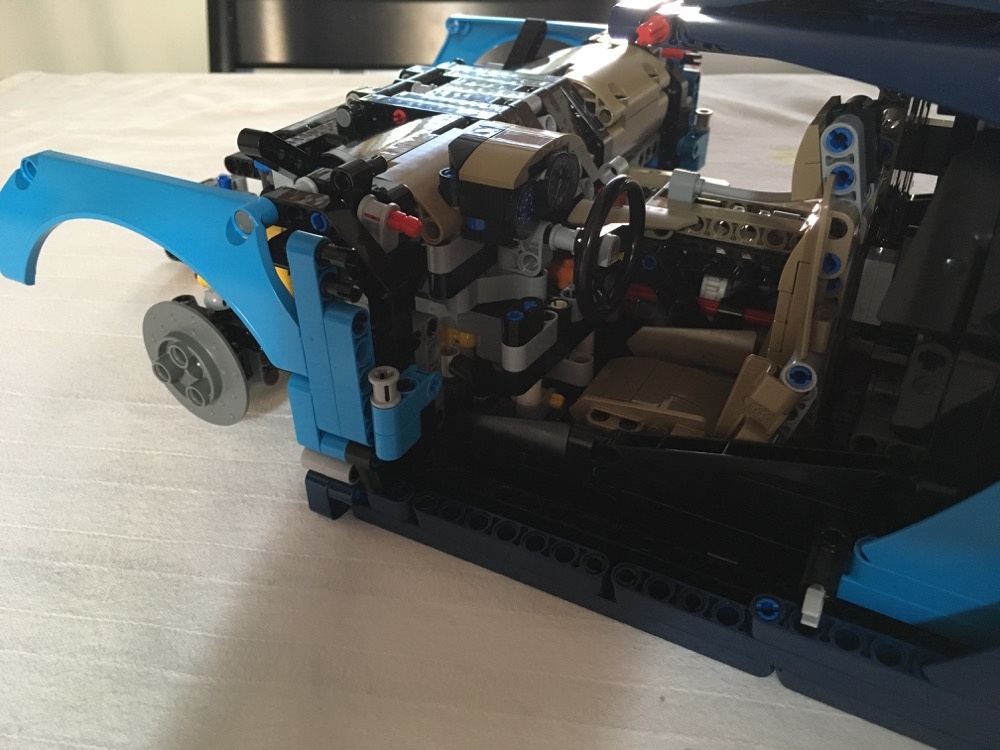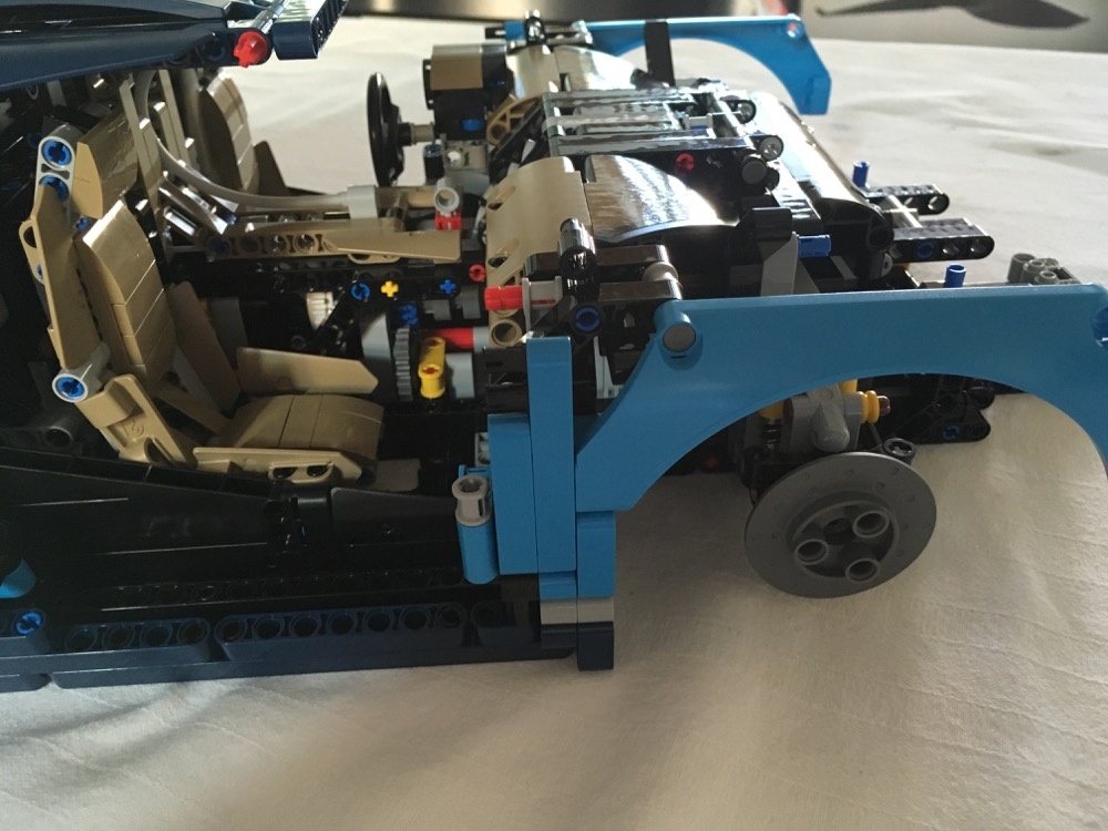 De stickers zijn wel jammer met de Bugatti. Ik snap dat een bedrukt onderdeel wellicht minder goed toe te passen is elders, maar met een set zoals de Caterham zijn notabene alle onderdelen bedrukt. Waarom bij zo'n set wel.