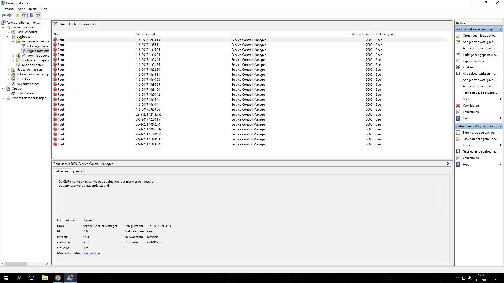 Fout 1-6-2017 12:07:23 Service Control Manager 7000 Geen