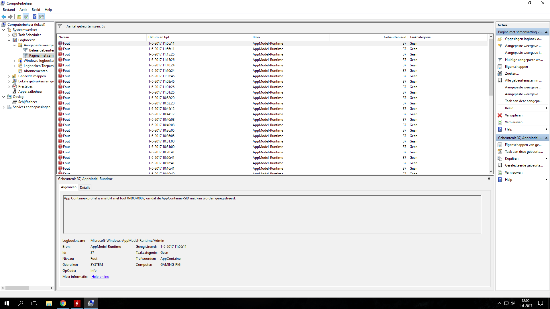 Fout 1-6-2017 11:56:11 AppModel-Runtime 37 Geen