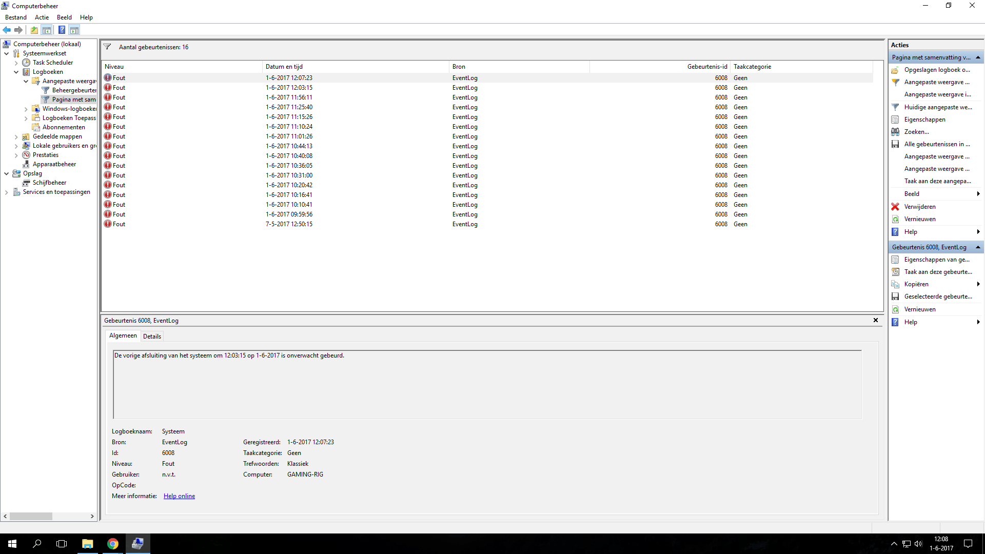 Fout 1-6-2017 12:07:23 EventLog 6008 Geen