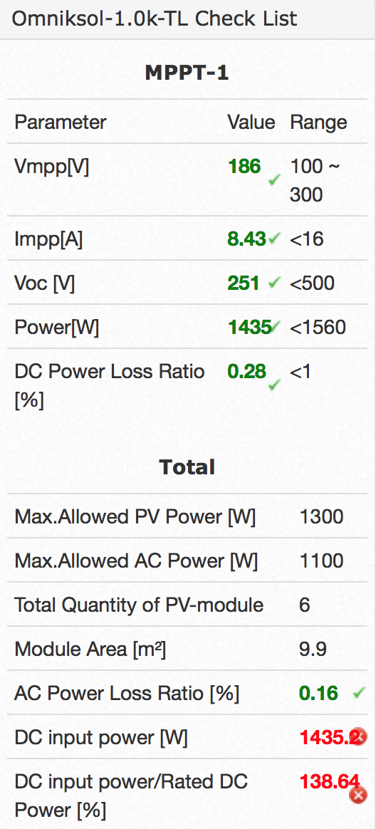 ONO = 69% efficientie. 6* 260 = 1560 Wp