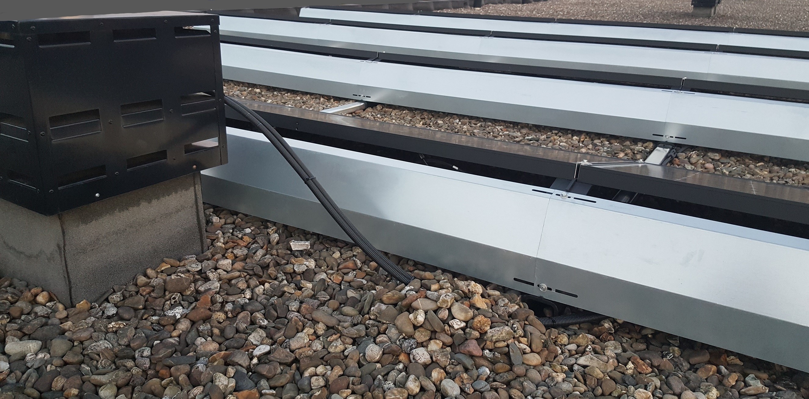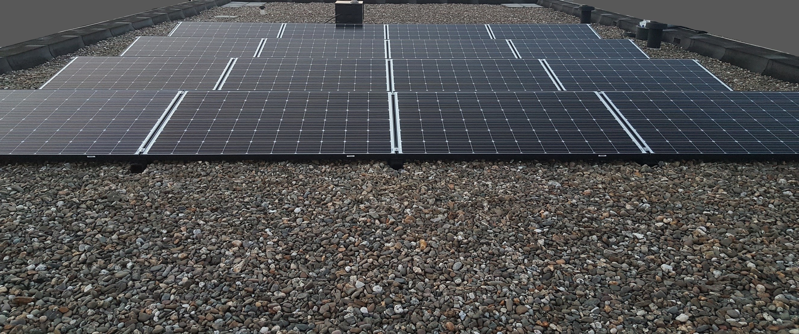 Leg ik die gewoon op het grind van het platte dak en schroef ik daar de panelen op.