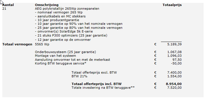 De totale som zal dan zijn 10 * 250Wp = 2500Wp op de XS2000. Officieel is dat te veel, maar gezien de oriëntatie denk ik dat het niet heel problematisch is. In de data sheet staat een aanbevolen bereik van 1500W - 2000W.