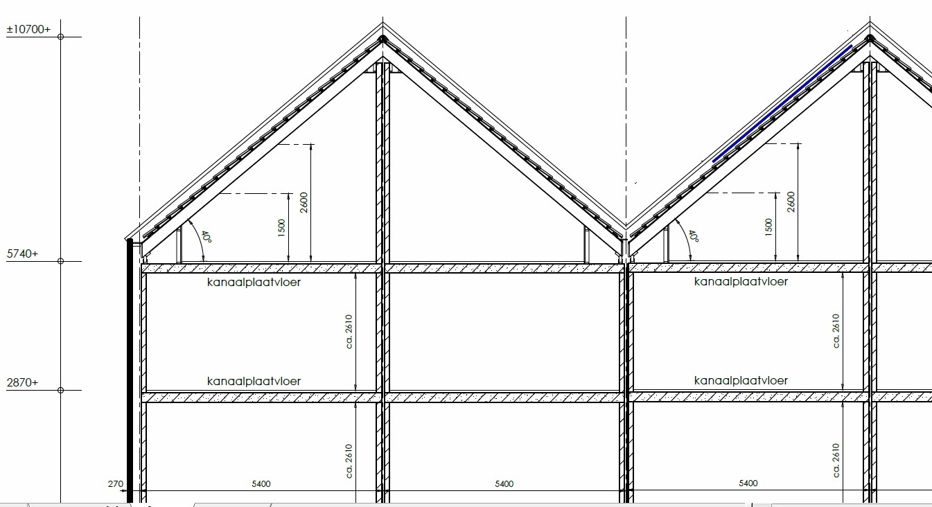 dus de hoogte van nok naar dakgoot en de hoogte van nok naar inpandig balkon, de breedte is geen probleem