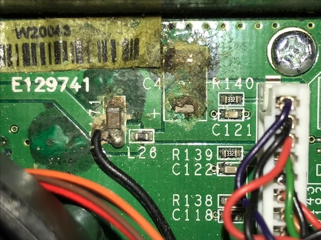 Ik heb de stofzuiger net geopereerd en 'C4' op het moederbord zag er niet tof uit en kon ik zo van het moederbord af plukken. Behoorlijk gecorrodeerd.