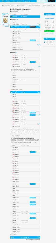 Als je de volledige pagina bekijkt door een deel van de CSS uit te schakelen, dan zie je de history van alle aanbiedingen bij Ben. Er zijn eerdere aanbiedingen van een 5000 MB bundel te zien, maar nog niet in combinatie met een verdubbeling tot 10 GB.