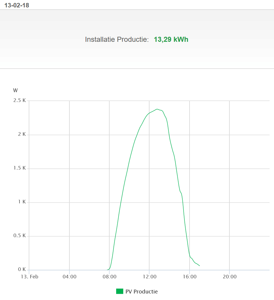 Klopt! Opmerkelijk te zien hoeveel meer vermogen er vandaag uit komt. Staat de zon 24 uur later alweer zoveel hoger? Of was er gisteren toch lichte sluierbewolking?reneeke1970 schreef op woensdag 14 februari 2018 @ 09:31: