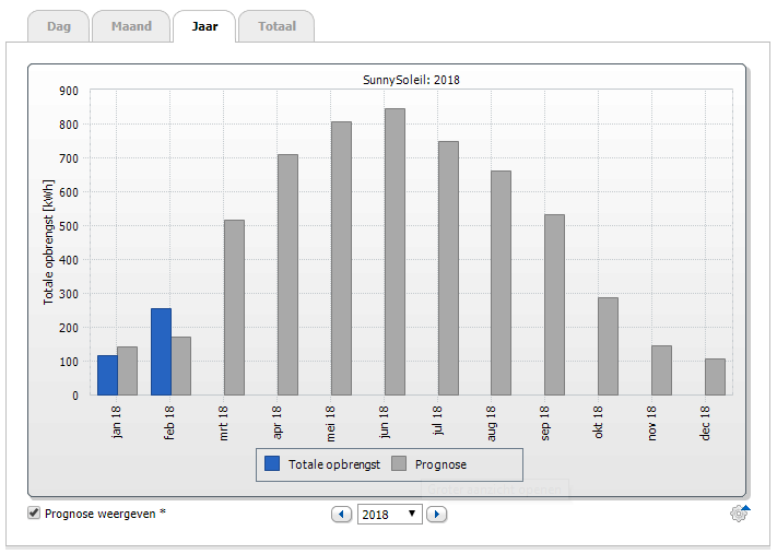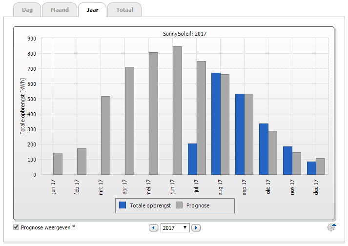 de maand teller staat op 98 KWh , vorig jaar waren het er totaal 154 KWh en de prognose staat op 234 KWh eens zien waar het schip strand , hopelijk hoog om januari een beetje te compenseren
