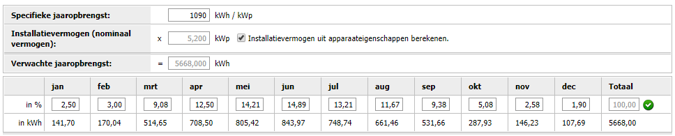 Edit: 1.286 Wh/Wp (speciaal voor Rol-Co