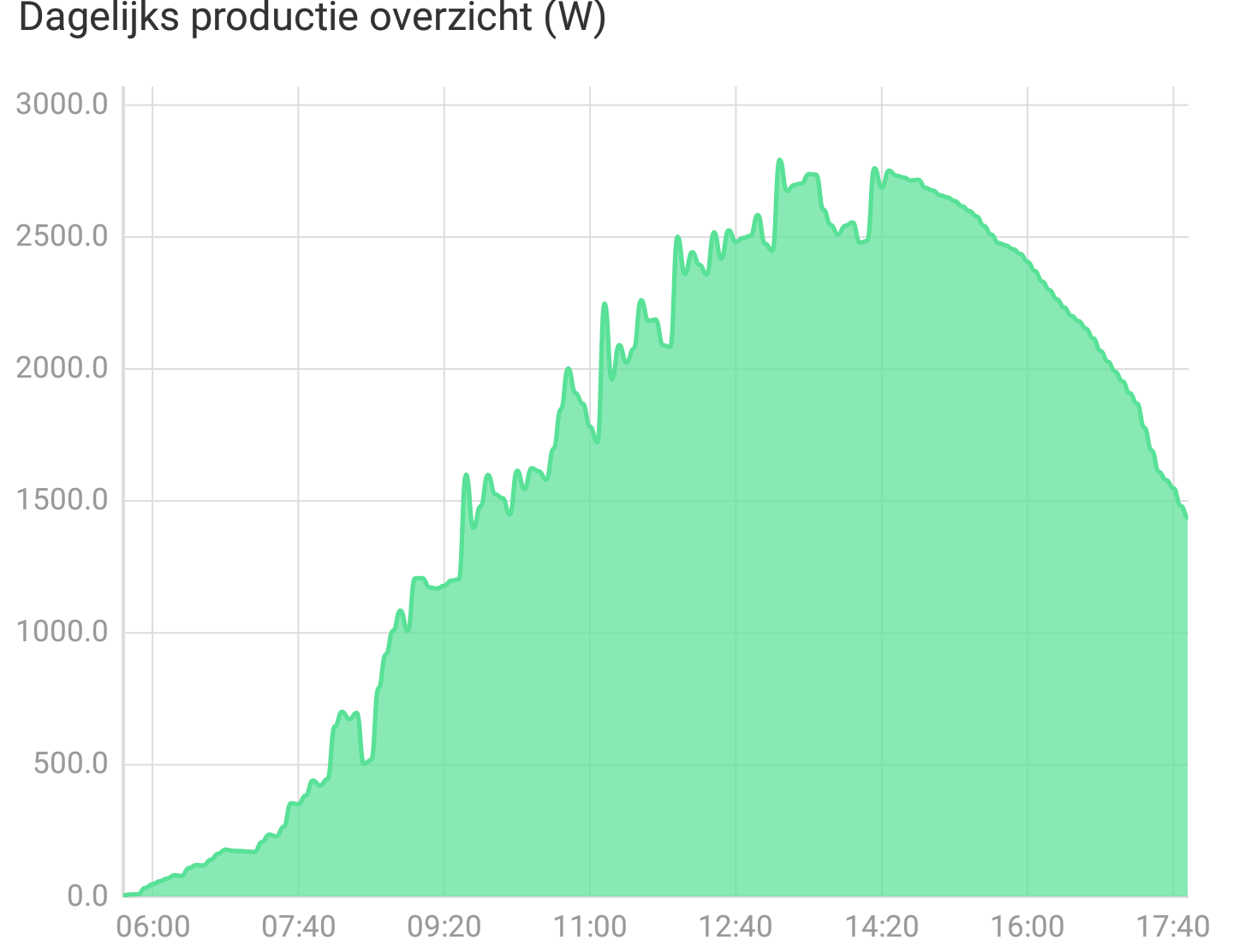 Dat is dan met schaduw in de ochtend en in de avond, en 1500 WP die na 18:30 al niks meer doen (<100watt) ivm tuin huisje in schaduw van huis.