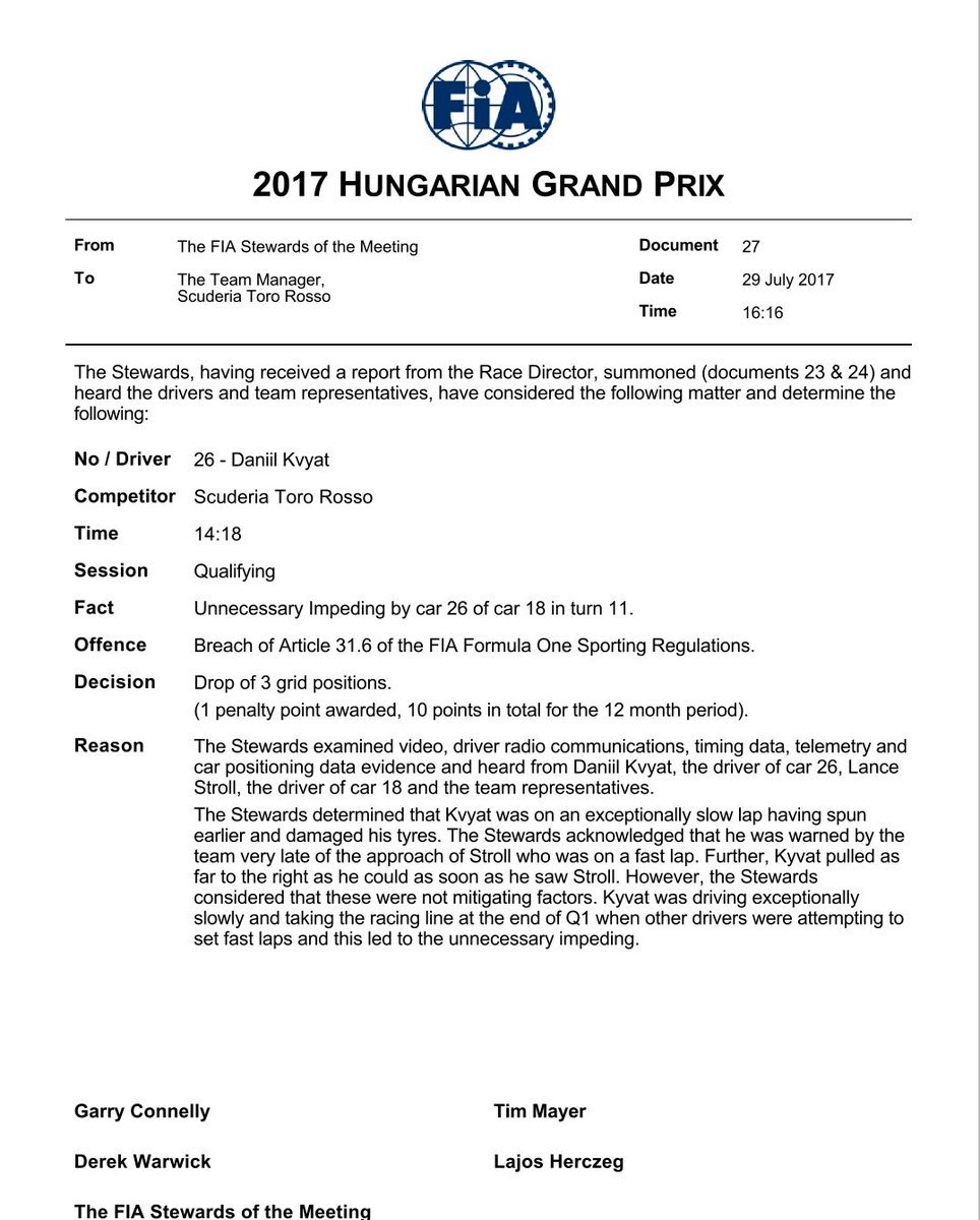 Toen ik vanmiddag live keek dacht ik al nou kijk uit met de baan op rijden. Verder niet meer op gelet. Zie net de onboard, en moet zeggen, Stroll wordt echt wel serieus gehinderd. Terecht dat hij er een penalty voor krijgt. Misschien wel wat zwaar. Maar denk dat Kvyat inmiddels echt wel al een beetje onder vergrootglas ligt...AzzKickah schreef op zaterdag 29 juli 2017 @ 17:51: