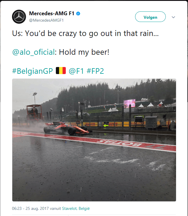 Om 6.00 vertrokken in Oirschot en behoorlijk op tijd op de tribune @ Les Combes (rond 8.30-9.00). Tijdens de 2e training zaten we bij Pouhon en toen ik lichte druppels voelde zijn we op tijd richting de auto gegaan (dus 15.10 vertrokken ongeveer) maar het begon harder en harder te regenen.
