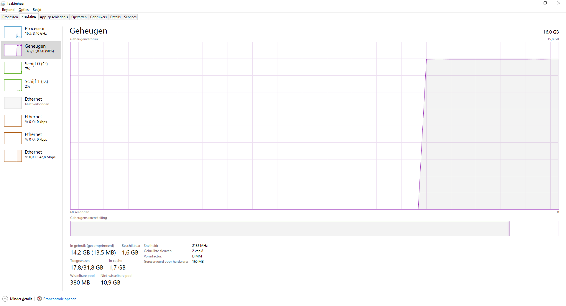 koen! O, de wisselbare pool loopt vol en na herstarten weer lees ik. Dit is een behoorlijk probleem en duid meestal op een hardware probleem. Je geheugen bestaat uit Wisselbare pool en Niet wisselbare pool. De wisselbare pool heeft geen vaste verblijfsvergunning dus die blijft constant vollopen. De niet wisselbare pool moet er altijd zijn. Bij 16GB fysiek geheugen, wordt dit onderverdeeld in wisselbare polen en niet wisselbare polen. Soms lost het probleem met veel wisselbare polen vanzelf op wanneer je stopt met zwart betalen voor klusjes, dan komen ze niet terug.