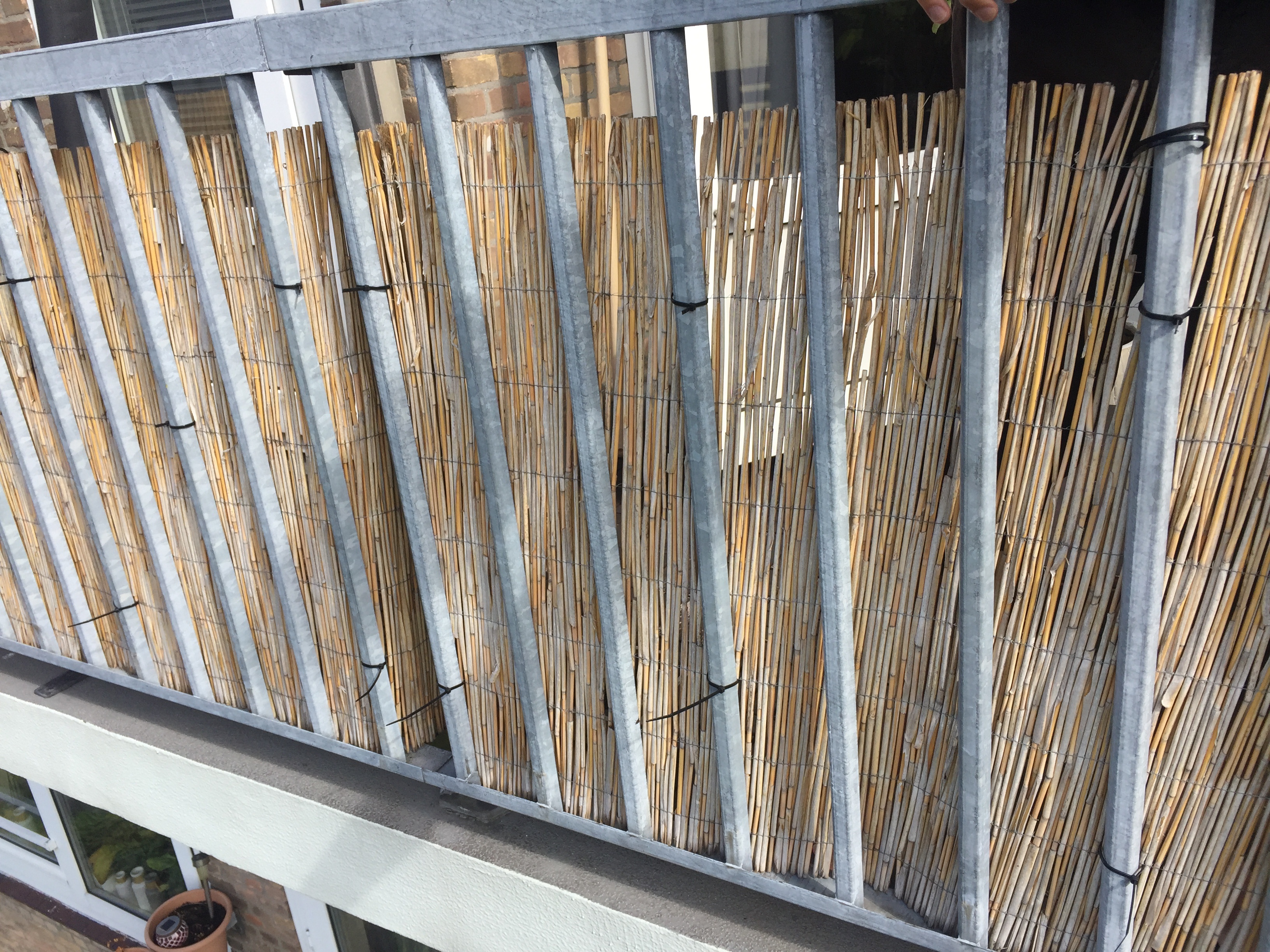 Balustrade is uit stevig metaal gemaakt en verankerd in het betonnen balkon. Het metalen gedeelte met de spijlen (beoogd voor bevestiging is 85cm hoog)