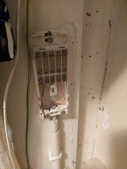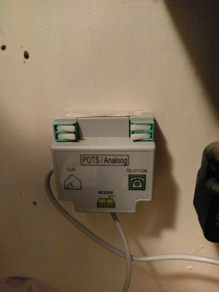 -Telefoonkabel op 30cm gestript en de blauwe en rode kabel op de zelfde kleur kabels op het ISRA punt gezet. Andere kant direct het modem in en 15 minuten gewacht. Dit gaf geen enkele reactie; L1 / L2 gaven beiden geen lampje.