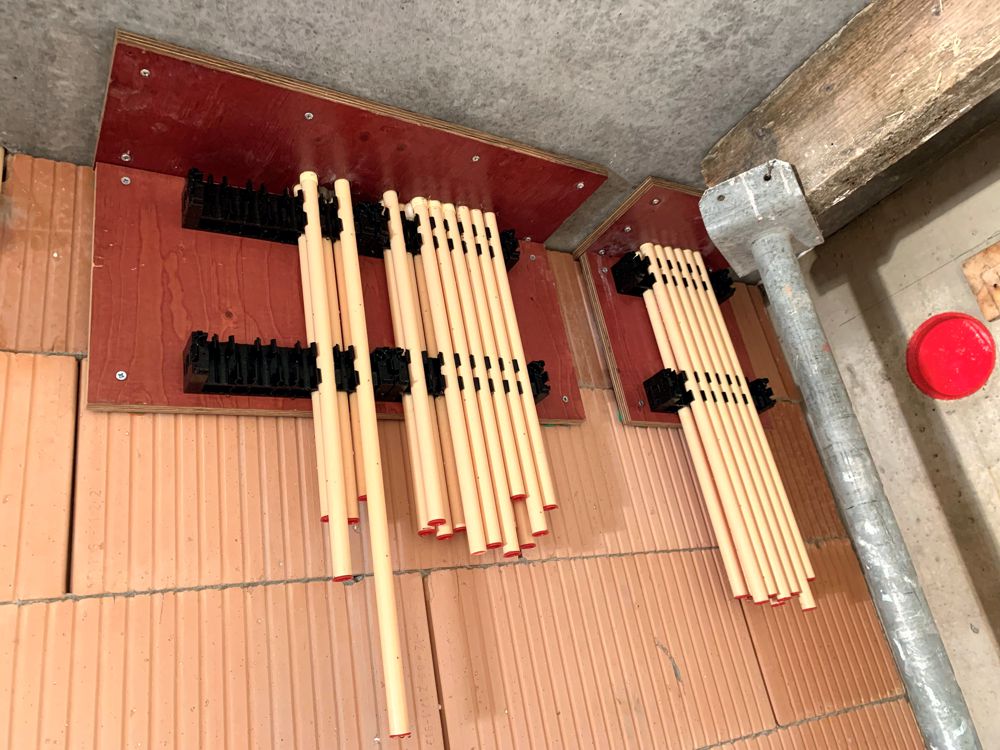Hier ook Friesland en flex wat uitkomt in de meterkast maar wordt straks omgezet in buizen vanaf de bovenkant van de meterkast.