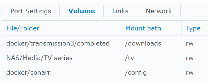 Ik heb bv. voor de downloads een mapping van /volume1/apps/nzbget/complete/tv naar /downloads op de localhost.