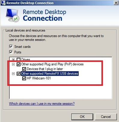 Ik ben bang dat het niet kan. Ik wil een camera via RDP werkbaar krijgen op mijn Windows 10 N Azure VDI. Volgens mij kan dit alleen maar als je een usb camera hebt. Maar ik wil mijn laptop integrated usb cam gebruiken.