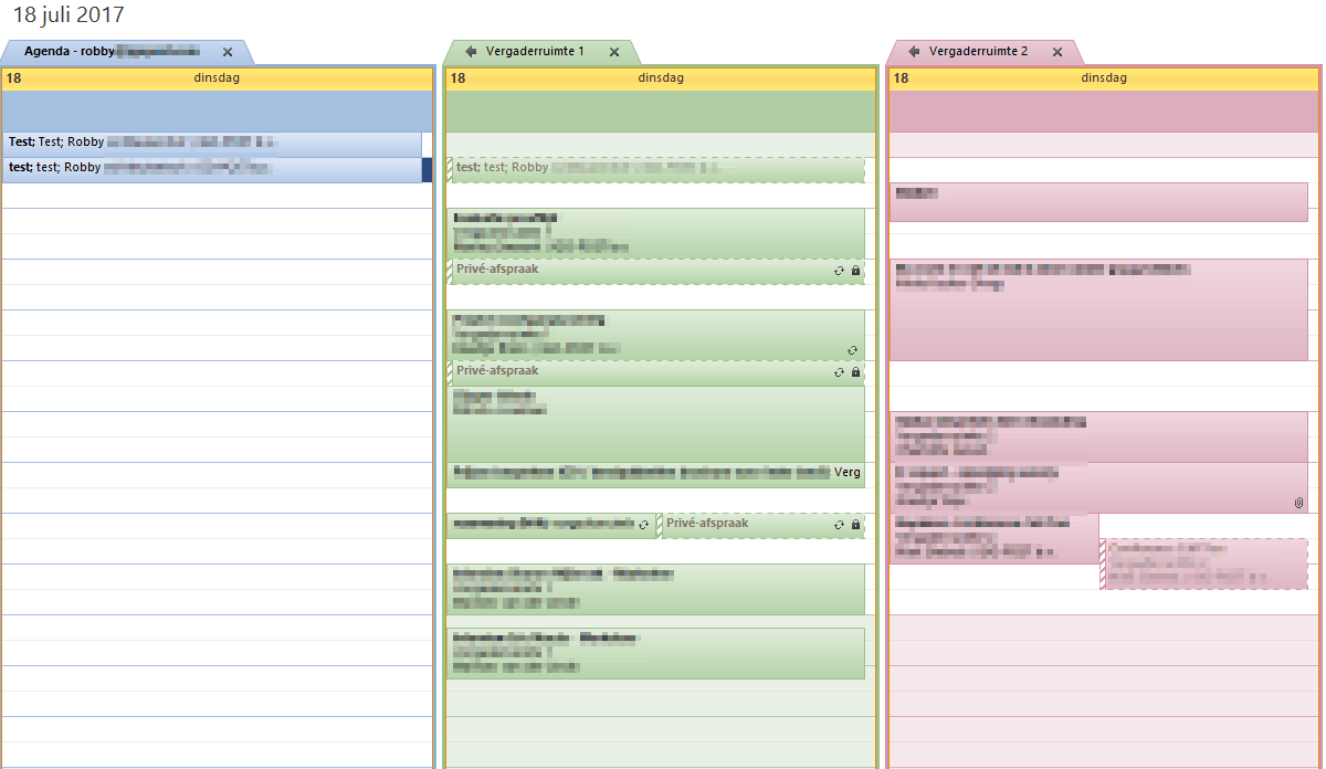 Als we verg2 uitnodigen dan is niet zichtbaar in de agenda tot dat de persoon die vergaderruimte2 beheert op het verzoek klikt dan is hij zichtbaar voor alle andere. Dus dat je ziet dat hij erin staat maar nog niet geaccepteerd.