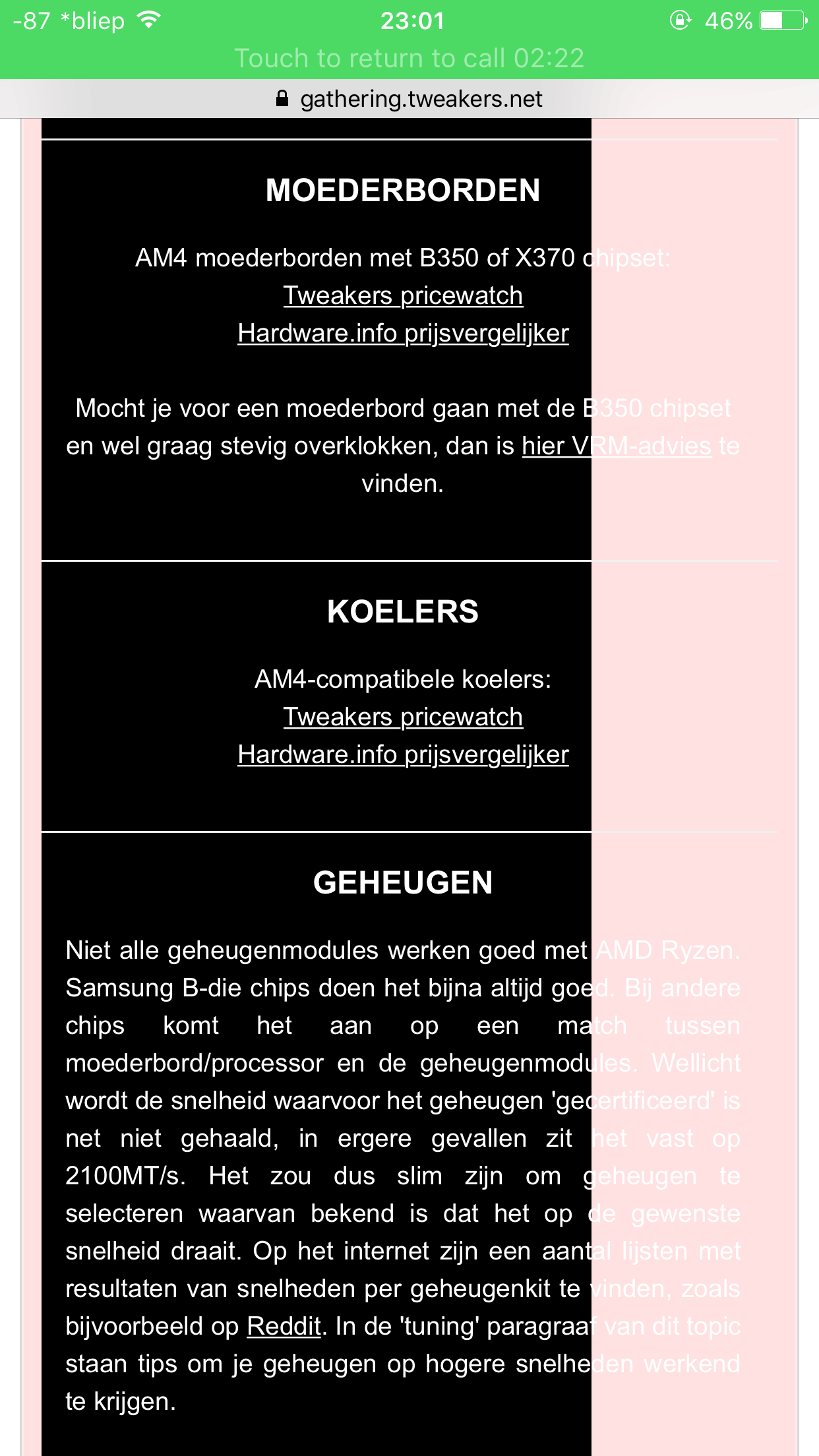 De hele topicstart zit in een tabel met bgcolor=black, echter op mobiel (in mijn geval iPhone 6S Plus) krijgt het gedeelte waarvoor je naar rechts moet scrollen geen zwarte achtergrond. Dit expliciet aangeven in de [td]'s maakt het werkend, maar hoort dit niet nu al te werken?
