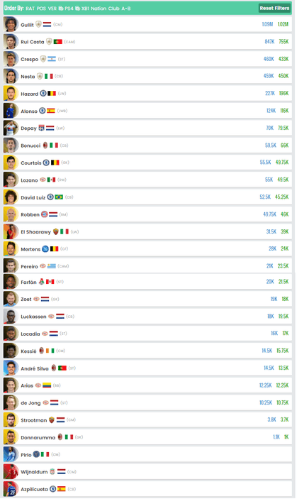 Heb nu Wilson IF 84, moet er nog inkomen denk ik. Maar scoort bijna elke wedstrijd bij mij.