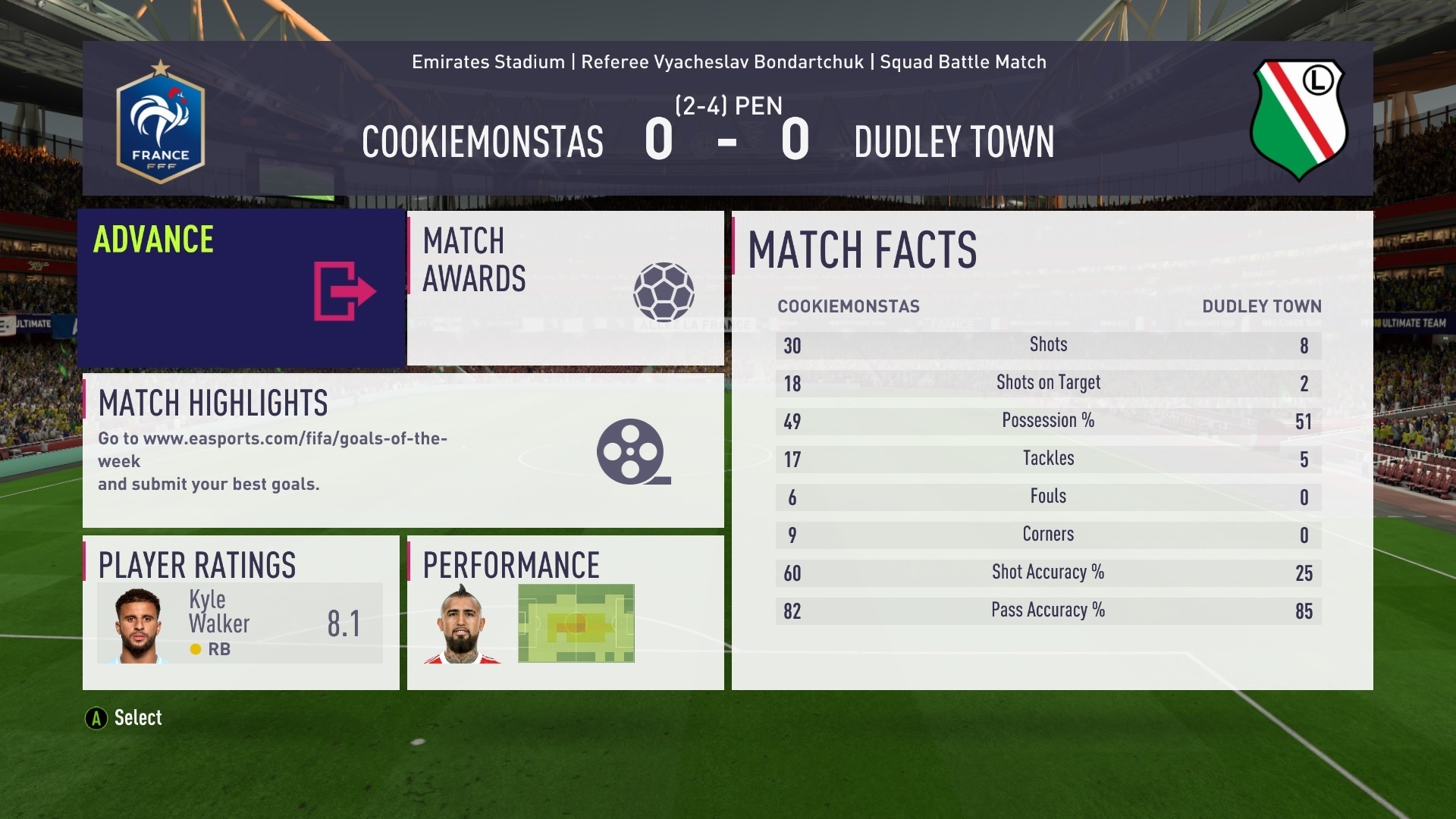 Als je de wedstrijd nog eens terug wilt kijken dan kan je analyseren waar je kunt verbeteren. Ik verlies overigens vaak genoeg tegen gold teams. Die vrije trap van Jesus zat er goed in, jammer dat hij zijn 2e niet wist te maken.