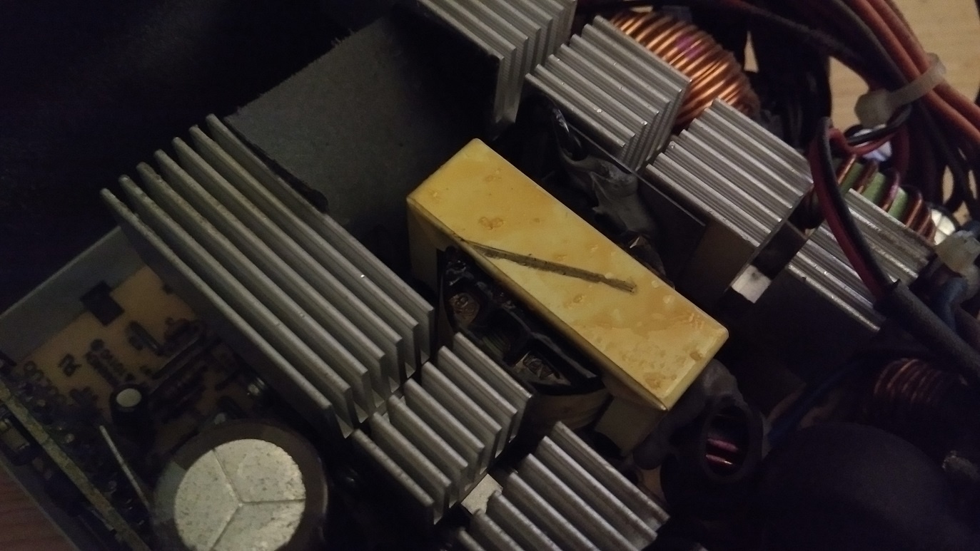 De voeding heb ik opengeschroeft om deze te ontstoffen (wat nodig was!) en ik zag het volgende: