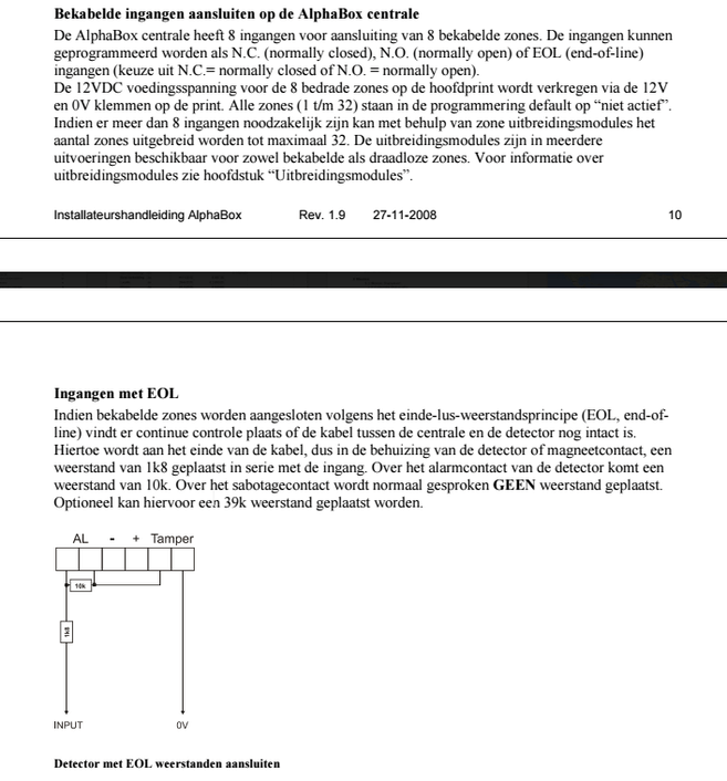en de gebruiksaanwijzing van het alarmsysteem zegt het volgende: