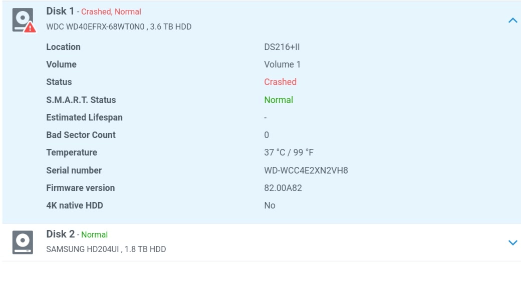 Mijn Synology NAS geeft aan mijn mijn HDD stuk is. Crashed met meerdere badsectors.