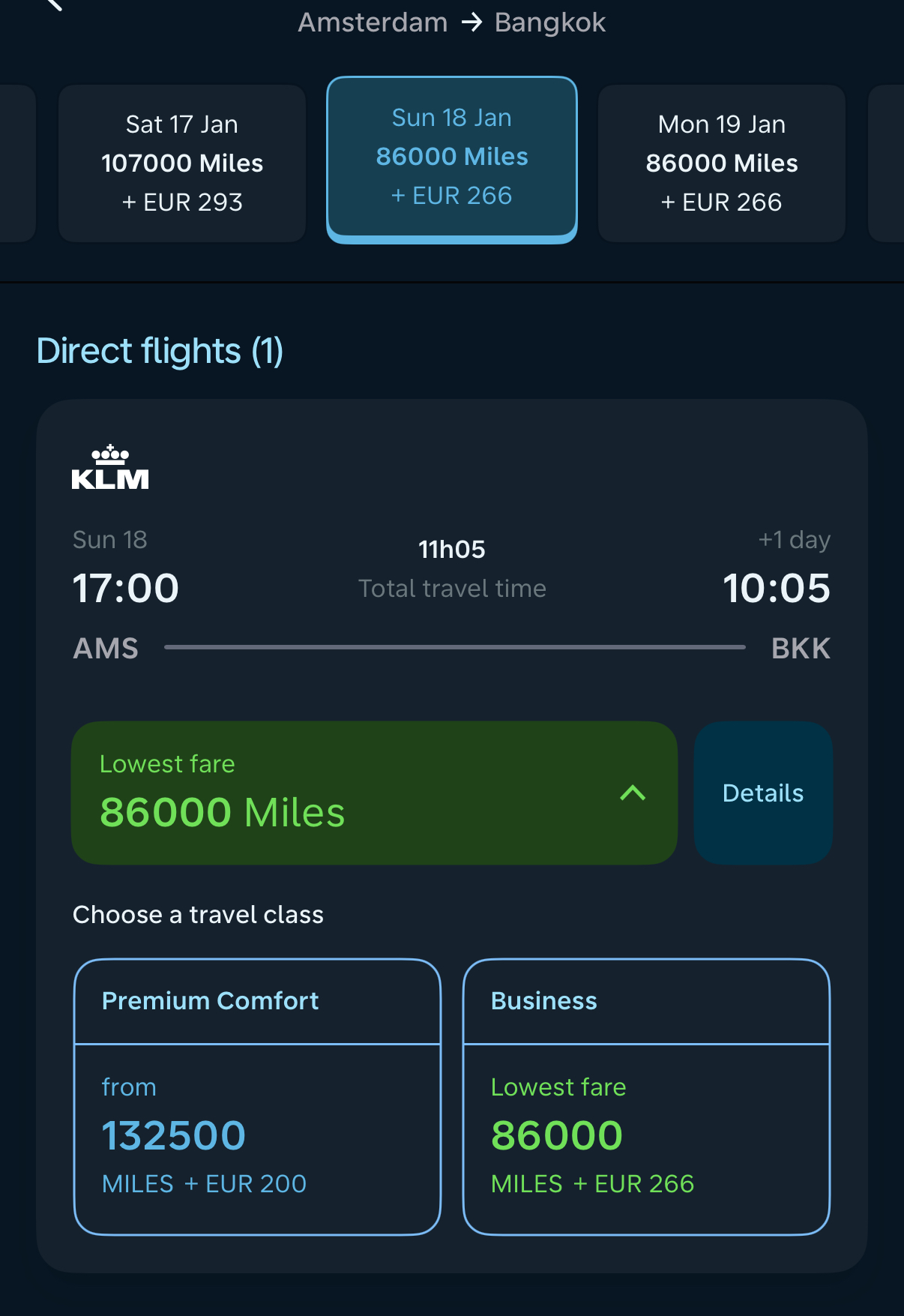 Soms staat de prijs in Miles van reward tickets niet in verhouding tot die van revenue tickets. Dat wil zeggen dat de prijs in Miles soms erg laag is (of juist erg hoog) ten opzichte van de prijs in Euro.Sacrada schreef op maandag 17 februari 2025 @ 14:16: