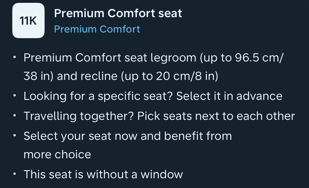 Dat is dus gewoon een extra inch aan beenruimte. Op zo'n lange vlucht wel erg prettig.