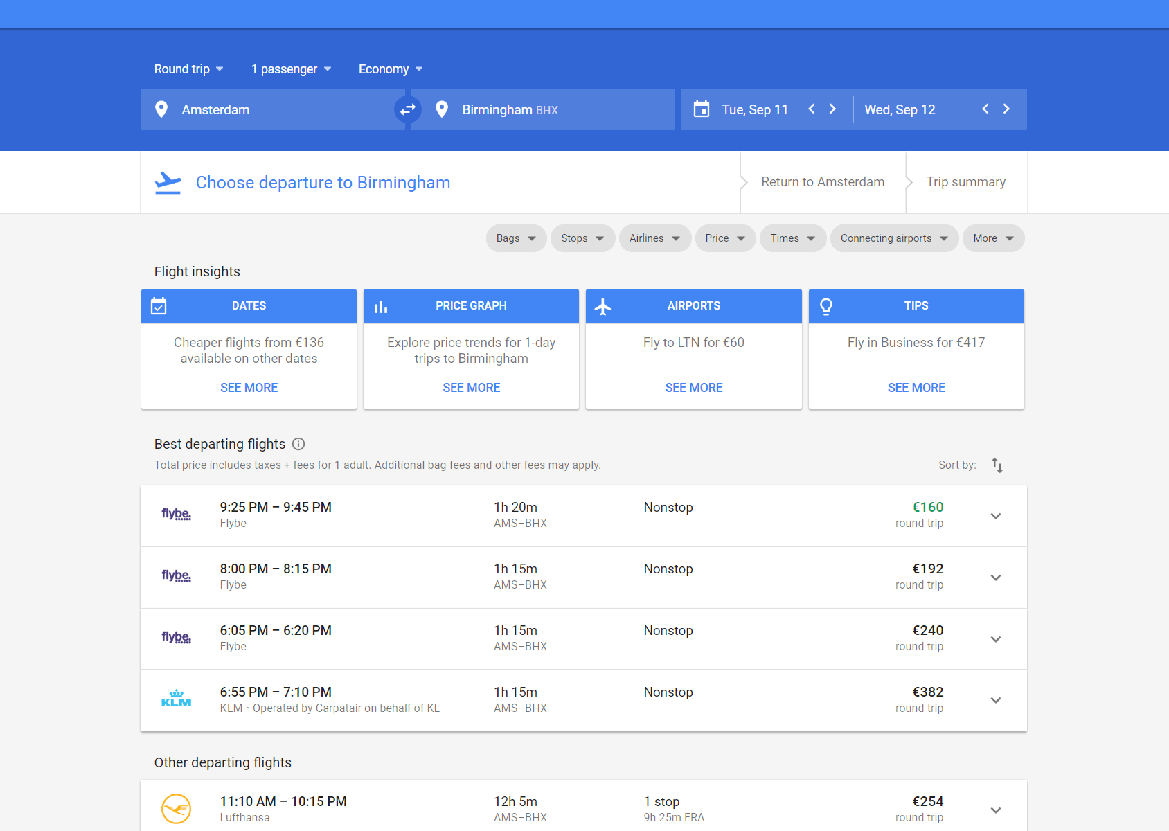 Je ziet echter ook bestemmingen op de miles-prijzenchecker zoals: