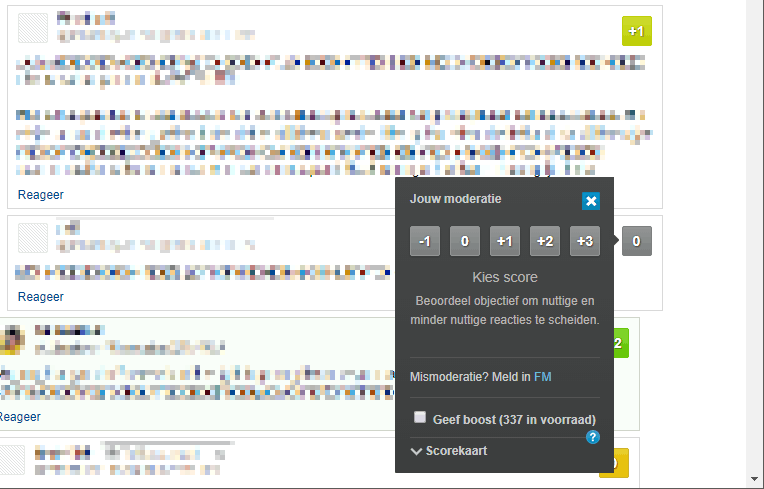 Echter bij geneste discussies verdwijnt de moderatie popup uit beeld.