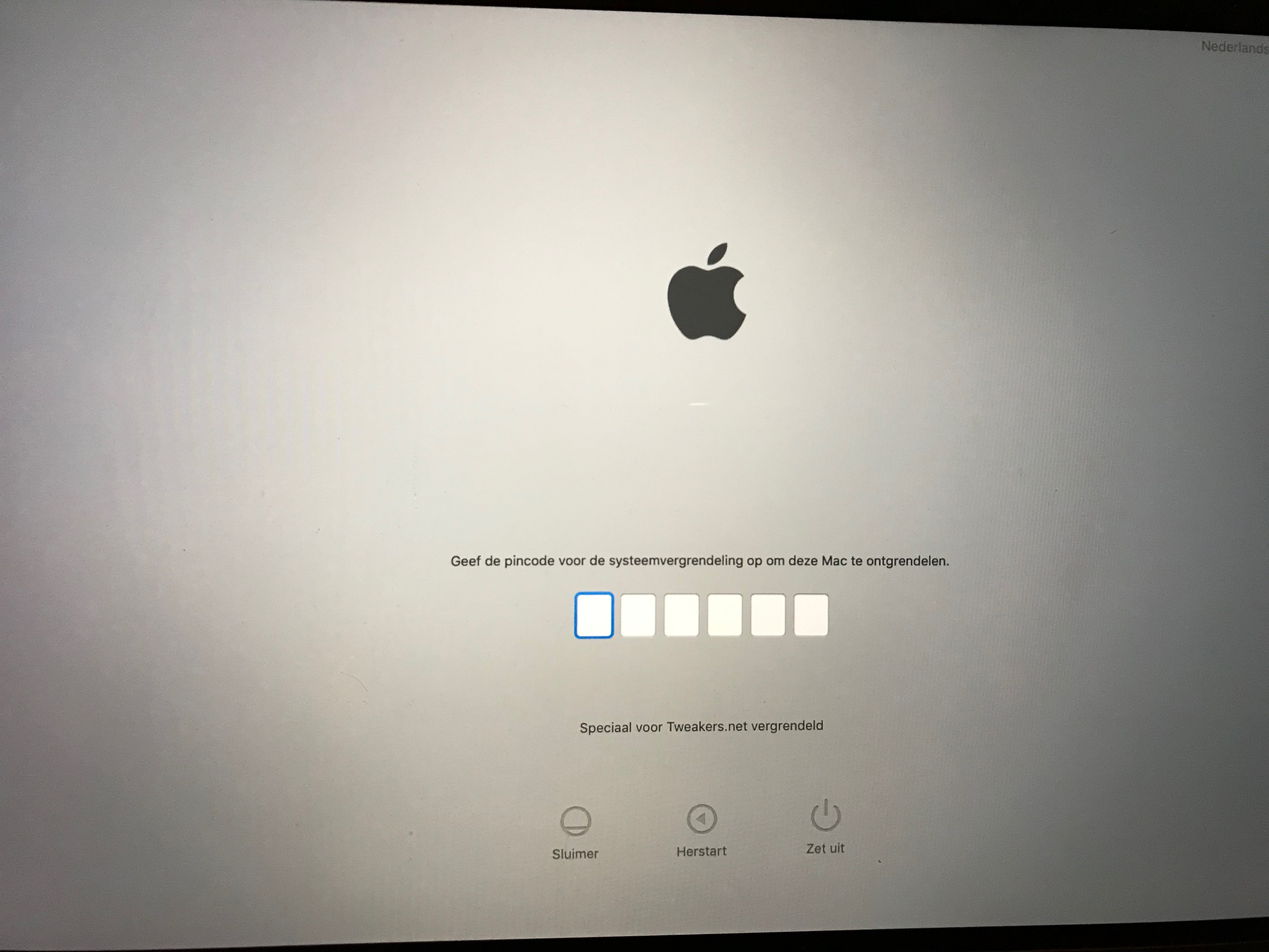 Onderstaand scherm krijg je wanneer je de Mac probeert op te starten in: