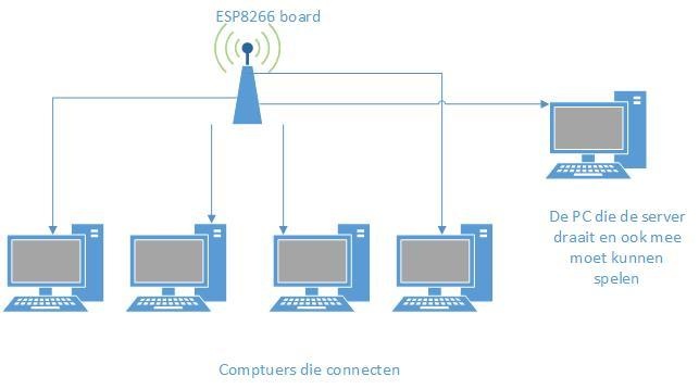 Ik heb nu een ESP8266 en wil die rgaag in een 'router' maken, zodat er op school een connectie gelegd kan worden tussen meerdere mensen en er een lokale server voor een game kan worden gedraaid(dus de poorten moeten worden opengezet neem ik aan)