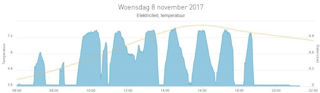 Nu moet ik zeggen dat ik een 'hoog' verbruik in de nacht registreer. Ik ga een dezer dagen toch eens op programma draaien. Als het vanaf 0500 weer opgestookt wordt is het goed genoeg eigenlijk.