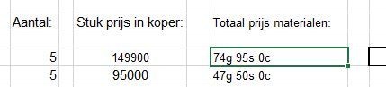 Ik ben bezig met een excel bestand te maken voor een Game.