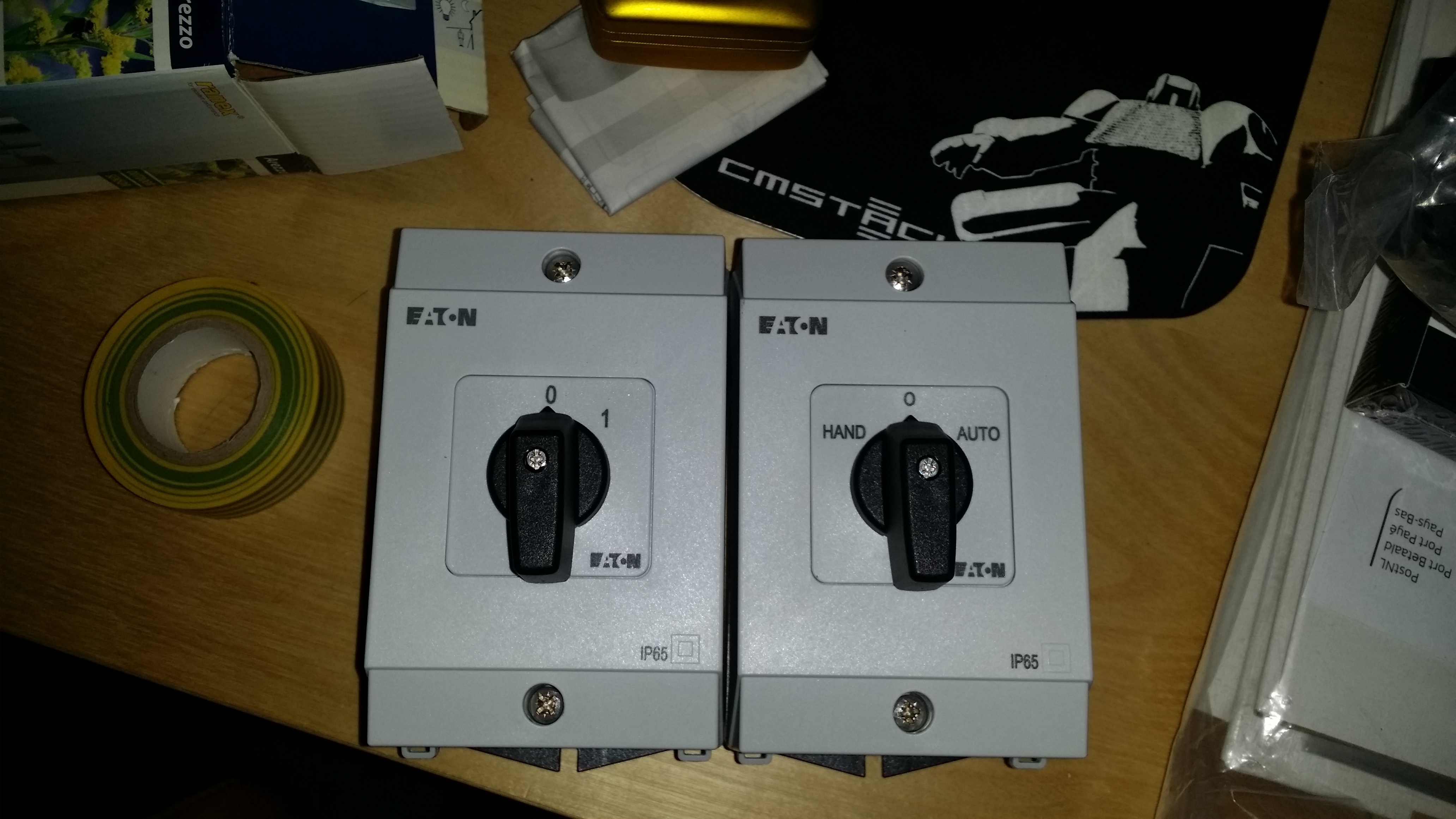 Ik ben op zoek naar een betaalbare schakelaar (2 stuks) om mijn werkplaatsje in één keer spanningsvrij te kunnen schakelen, mocht dat eens nodig zijn (calamiteiten, onderhoud of vakantie).