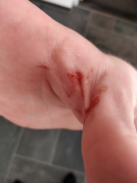Op de foto was het meeste bloed al weg, maar i.v.m bloed een spoiler tag