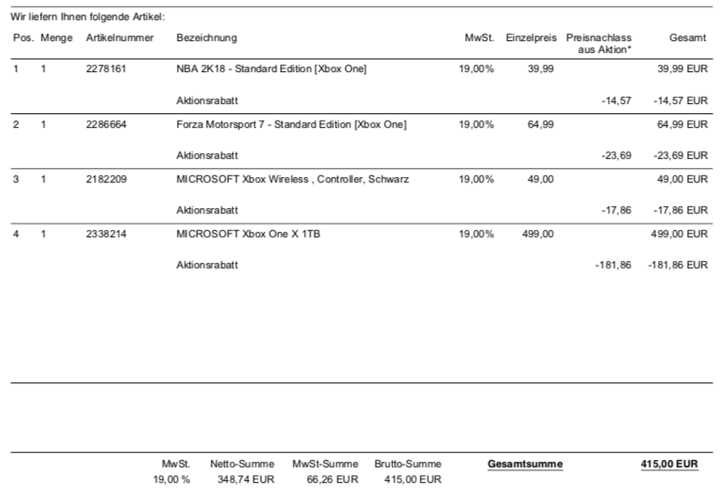 Zat net de factuur te bekijken en dit was gewoon een aanbieding bij de Duitse MM, die gekke dagen heb je dus echt niet nodig. Bij mij was het ook een upgrade en de spellen had ik al, die konden mooi in de verkoop evenals de controller en mijn oude One S...
