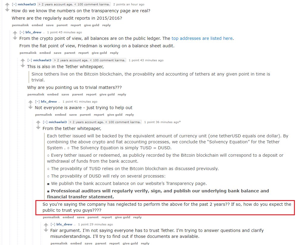 Waar lees jij dat hij zegt dat iedere USDT niet backed is door USD?