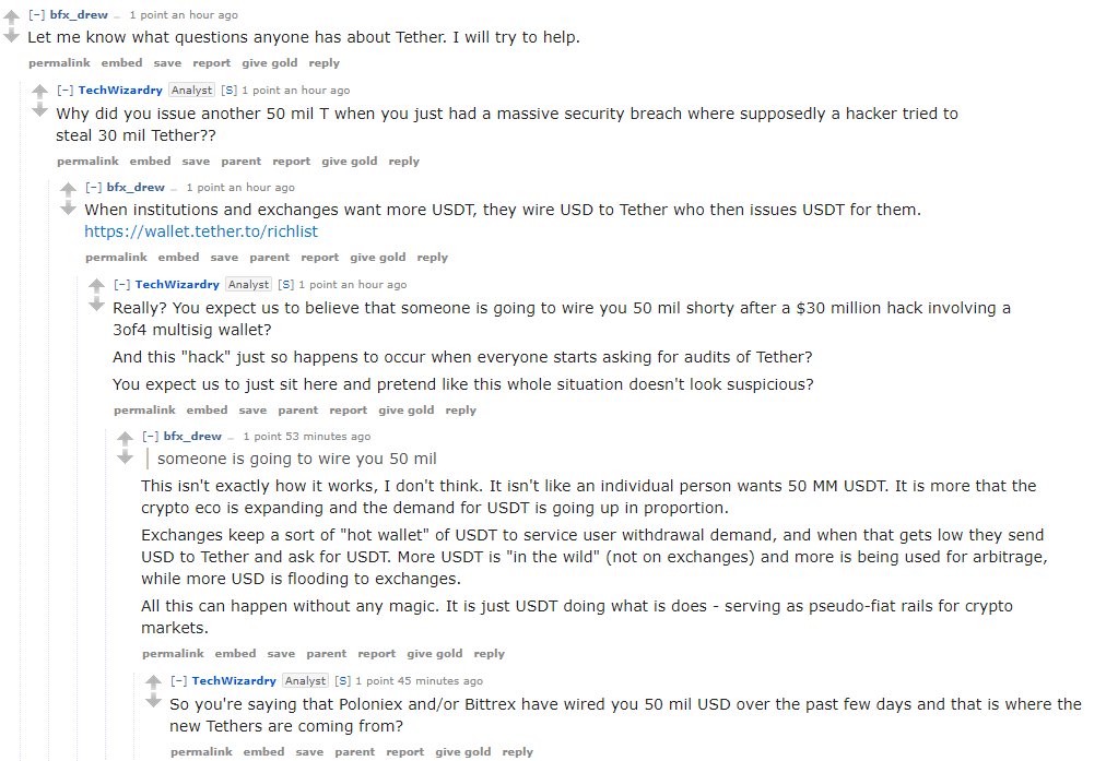 Het punt van USDT is dat ze in hun whitepapers hebben staan dat er voor elke usdt die ze uitgeven 1 usd op hun bankrekening moeten ontvangen. Het hele punt van tether is dat het makkelijk zou moeten worden om tussen exchanges te traden. Je zou dan je tether van de ene naar de andere exchange over kunnen maken. Op bijvoorbeeld finex is er alleen maar een BTC/USDT pair. Als er (zoals er in dit geval wordt gezegd door de medewerker bfx_drew) usdt wordt uitgegeven zonder dat er een usd deposit wordt gedaan ben je gewoon geld aan het printen. Zo is het dus mogelijk voor bijvoorbeeld bitfinex om usdt te 'lenen' van tether, vervolgens wordt er met dat tether btc gekocht en stijgt de prijs. Als de prijs is gestegen wordt de btc verkocht voor tether en hebben ze winst gemaakt. Ze gebruiken voor hun margin trades ook tether ipv usd.Richh schreef op dinsdag 28 november 2017 @ 17:32: