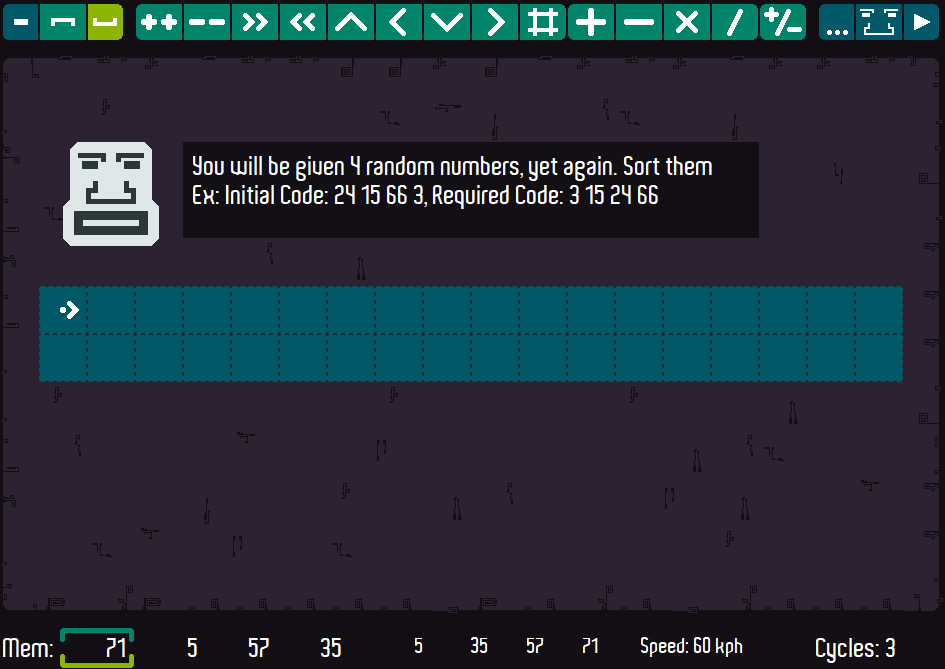 Er zijn in totaal 44 levels. De eerste 39 heb ik zelf opgelost, maar nu wordt het lastig. Voor de volgende drie heb ik eigenlijk geen idee hoe ik ze moet aanpakken,omdat de vrije ruimte voor programmacode heel beperkt is (level 40 & 42) of ik geheugencellen tekort kom (level 41 & 42).