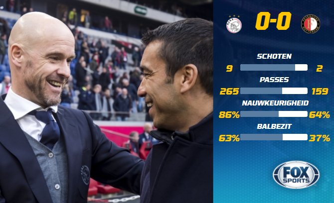 Even kijken of Ajax met wind mee wel de bal in het doel van Feyenoord kan krijgen