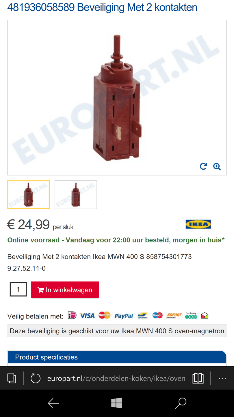 Het vreemde is dat nu ik het onderdeel eruit heb gehaald alle functies van de over (IKEA MWN400) gewoon blijven werken.