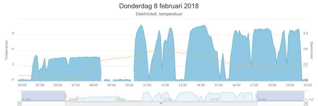 Woensdagavond had ik dipswitch B8 op on gezet. Dit om te zien hoe de Elga het doet bij buitenT onder de -2.