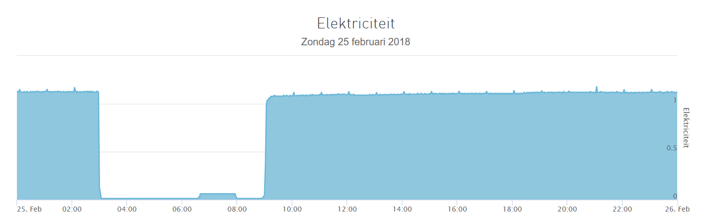 Ik had verwacht dat mijn Mitsu ook iets of ergens verwarming aan zou zetten bij deze temperaturen (-6 vanmorgen om 07:00) in standby stand maar als ik naar de grafiek kijk van afgelopen nacht zie ik 3 piekjes van 80 watt voor 10 minutenOxellaar schreef op zondag 25 februari 2018 @ 23:32: